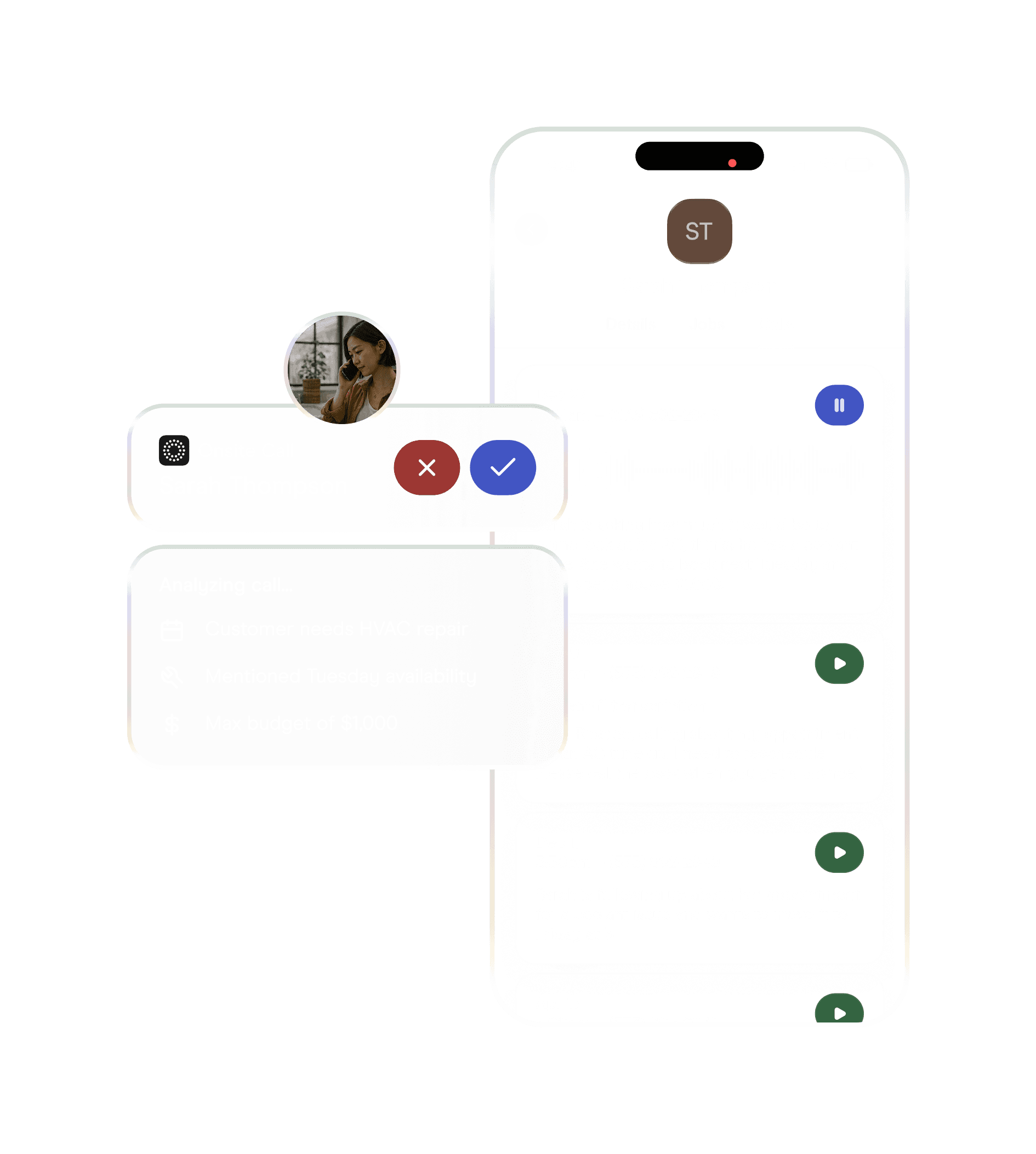 Search transcripts, pull exact quotes, and reference past conversations instantly. Our AI reads between the lines to flag follow-ups and job details. Never forget what a customer said—even if you do.